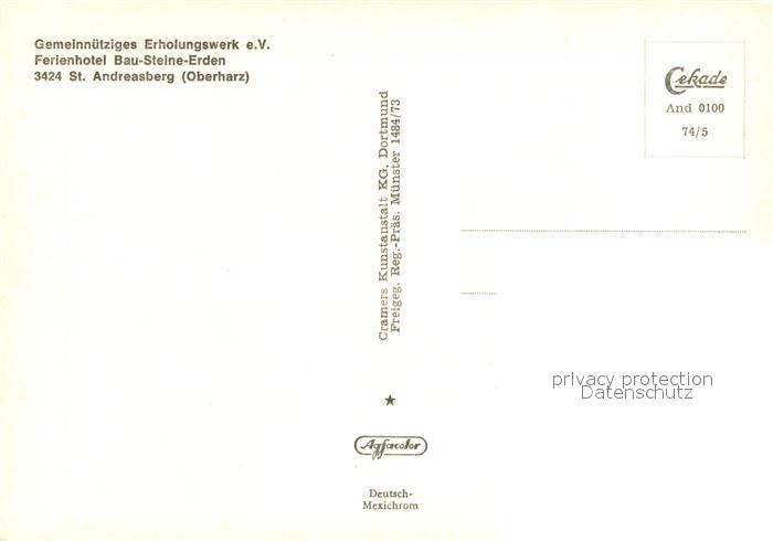 73656389 St Andreasberg Harz Ferienhotel der IG Bau Steine Erden postalisch nicht gelaufen Erhaltung siehe scans [WerneD78] KatCode: 11110003153010