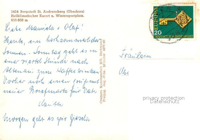 73718455 alte Postkarte St Andreasberg Harz Fliegeraufnahme postalisch gelaufen Erhaltung siehe scans [WerneD78] KatCode: 11110003153010