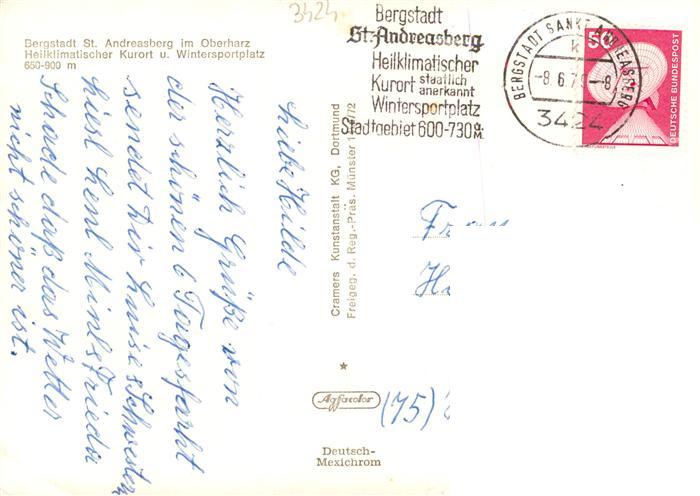 73947156 alte Postkarte St Andreasberg Harz Fliegeraufnahme postalisch gelaufen Erhaltung siehe scans [FriedD77] KatCode: 11110003153010