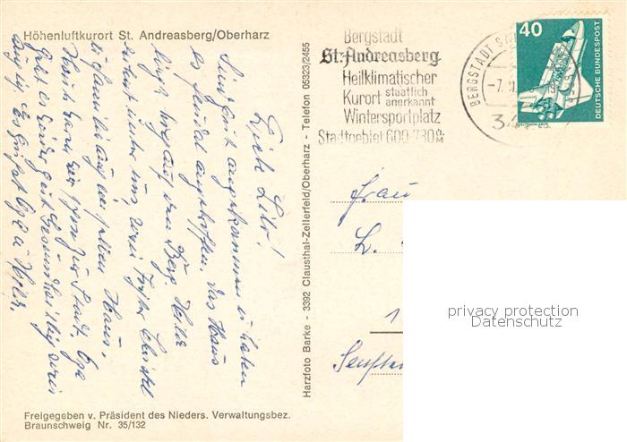 73752443 alte Postkarte St Andreasberg Harz Fliegeraufnahme postalisch gelaufen Erhaltung siehe scans [WerneD78] KatCode: 11110003153010