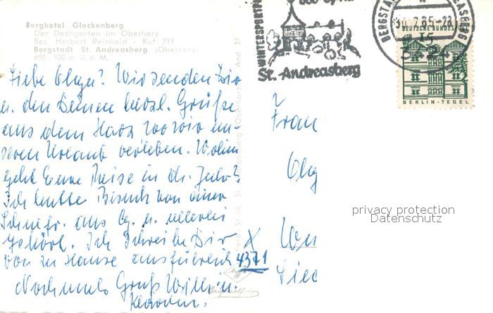 73616461 alte Postkarte St Andreasberg Harz Fliegeraufnahme Berghotel Glockenberg postalisch gelaufen Erhaltung siehe scans [WerneD78] KatCode: 11110003153010