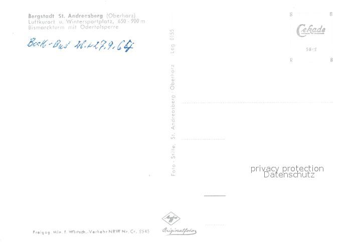 72941166 St Andreasberg Harz Fliegeraufnahme Bismarckturm Odertalsperre postalisch nicht gelaufen Erhaltung siehe scans [NatalD47] KatCode: 11110003153010