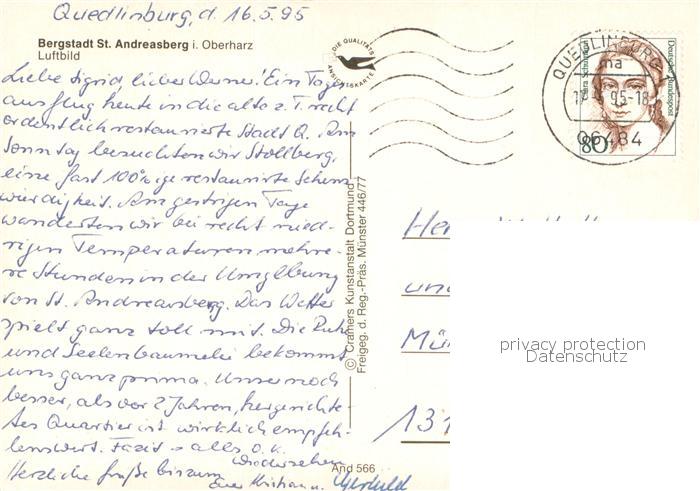 73776329 alte Postkarte St Andreasberg Harz Fliegeraufnahme Gesamtansicht postalisch gelaufen Erhaltung siehe scans [LiesaD40] KatCode: 11110003153010
