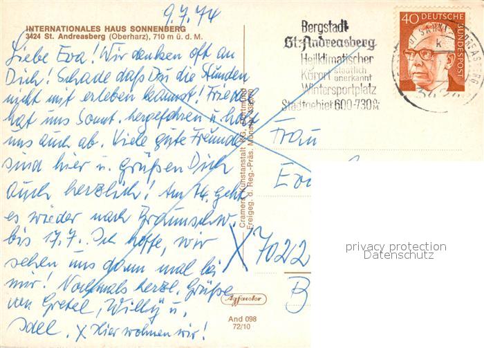 73095718 alte Postkarte St Andreasberg Harz Fliegeraufnahme Internationales Haus Sonnenberg postalisch gelaufen Erhaltung siehe scans [NatalD47] KatCode: 11110003153010