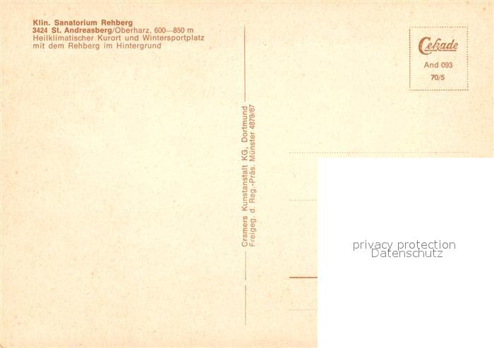 73087470 St Andreasberg Harz Fliegeraufnahme Klin. Sanatorium Rehberg postalisch nicht gelaufen Erhaltung siehe scans [NatalD47] KatCode: 11110003153010