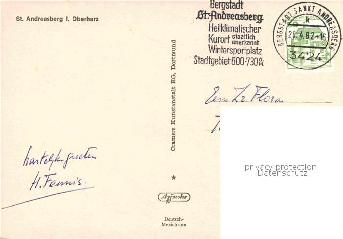 72864978 alte Postkarte St Andreasberg Harz Fliegeraufnahmen postalisch gelaufen Erhaltung siehe scans [LiesaD40] KatCode: 11110003153010