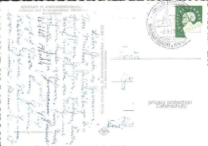 72103456 alte Postkarte St Andreasberg Harz Glockenturm postalisch gelaufen Erhaltung siehe scans KatCode: 11110003153010