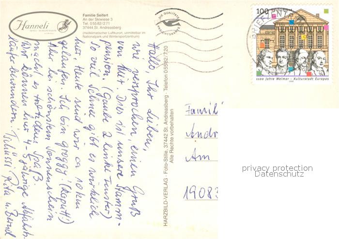 73655667 alte Postkarte St Andreasberg Harz Hanneli Hotel Bergpension postalisch gelaufen Erhaltung siehe scans [WerneD78] KatCode: 11110003153010