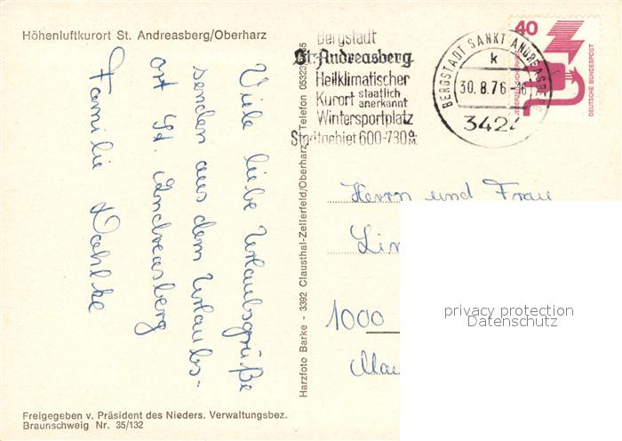 73600034 alte Postkarte St Andreasberg Harz Hoehenluftkurort Fliegeraufnahme postalisch gelaufen Erhaltung siehe scans [FriedD77] KatCode: 11110003153010