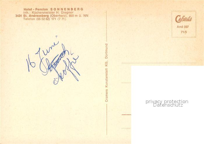 73717334 St Andreasberg Harz Hotel Pension Sonnenberg Gastraeume Terrasse postalisch nicht gelaufen Erhaltung siehe scans [WerneD78] KatCode: 11110003153010
