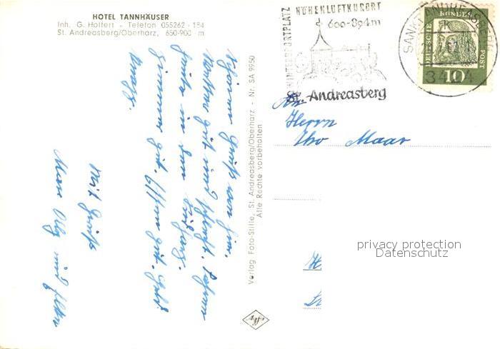 73094168 alte Postkarte St Andreasberg Harz Hotel Tannhaeuser postalisch gelaufen Erhaltung siehe scans [LiesaD40] KatCode: 11110003153010