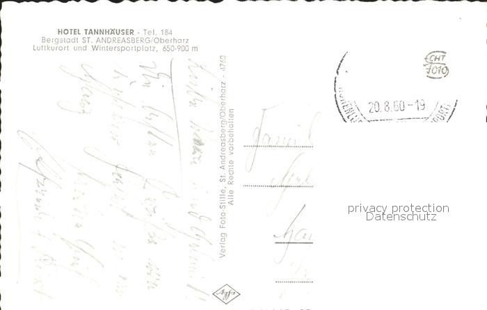 71982331 alte Postkarte St Andreasberg Harz Hotel Tannhaeuser postalisch gelaufen Erhaltung siehe scans KatCode: 11110003153010