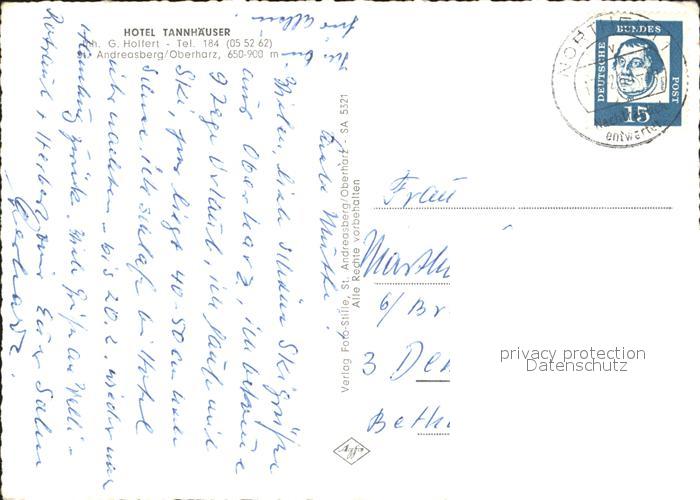 72079038 alte Postkarte St Andreasberg Harz Hotel Tannhaeuser Skipiste Wintersportplatz Winterpanorama postalisch gelaufen Erhaltung siehe scans KatCode: 11110003153010