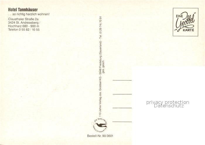 73647695 St Andreasberg Harz Hotel Tannhaeuser postalisch nicht gelaufen Erhaltung siehe scans [WerneD78] KatCode: 11110003153010