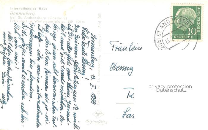 73724529 alte Postkarte St Andreasberg Harz Internationales Haus Sonnenberg Fliegeraufnahme postalisch gelaufen Erhaltung siehe scans [WerneD78] KatCode: 11110003153010