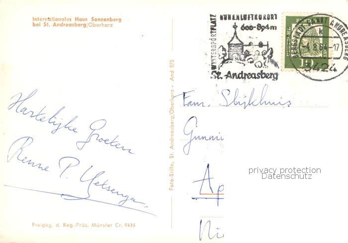 73813226 alte Postkarte St Andreasberg Harz Internationales Haus Sonnenberg Fliegeraufnahme postalisch gelaufen Erhaltung siehe scans [WerneD78] KatCode: 11110003153010