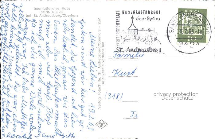 72577645 alte Postkarte St Andreasberg Harz Internationales Haus Sonnenberg im Winter postalisch gelaufen Erhaltung siehe scans [FriedD77] KatCode: 11110003153010