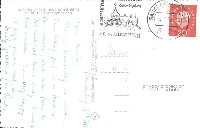 72073798 alte Postkarte St Andreasberg Harz Internationales Haus Sonnenberg Winterpanorama postalisch gelaufen Erhaltung siehe scans KatCode: 11110003153010