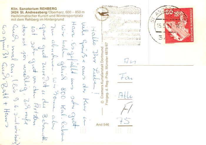 73937532 alte Postkarte St Andreasberg Harz Klinik Sanatorium Rehberg postalisch gelaufen Fliegeraufnahme Erhaltung siehe scans [WerneD78] KatCode: 11110003153010