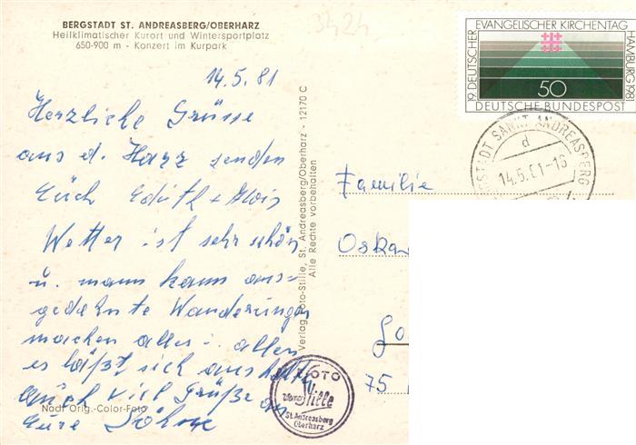 73949373 alte Postkarte St Andreasberg Harz Konzert im Kurpark postalisch gelaufen Erhaltung siehe scans [WerneD78] KatCode: 11110003153010