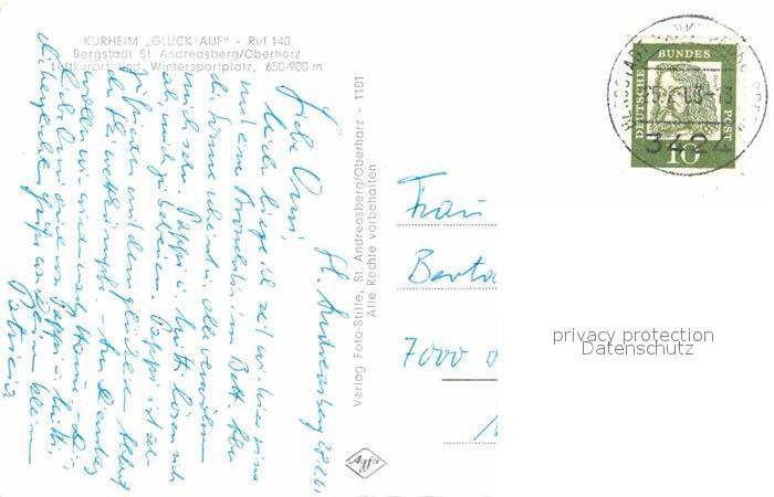 72791171 alte Postkarte St Andreasberg Harz Kurheim Glueck Auf postalisch gelaufen Erhaltung siehe scans [NatalD47] KatCode: 11110003153010