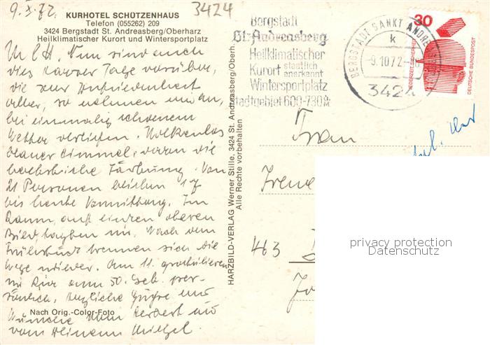 73866067 alte Postkarte St Andreasberg Harz Kurhotel Schuetzenhaus Gastraeume postalisch gelaufen Erhaltung siehe scans [WerneD78] KatCode: 11110003153010