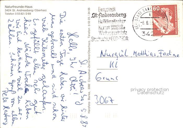 72038305 alte Postkarte St Andreasberg Harz Naturfreunde Haus postalisch gelaufen Erhaltung siehe scans KatCode: 11110003153010