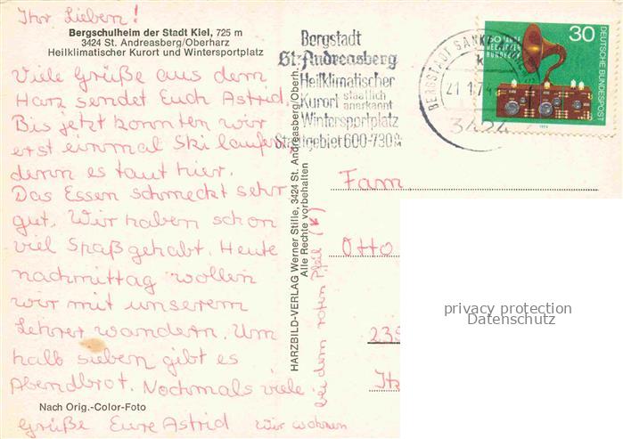 74154827 alte Postkarte St Andreasberg Harz Niedersachsen Bergschulheim der Stadt Kiel Fliegeraufnahme postalisch gelaufen Erhaltung siehe scans [WerneD78] KatCode: 11110003153010