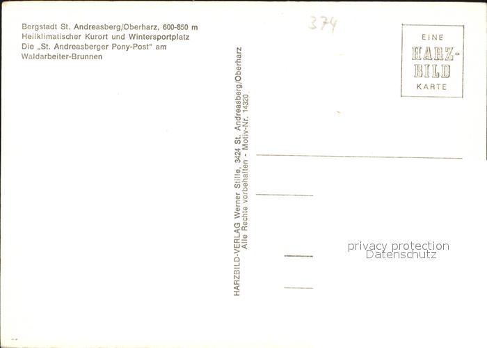 72606363 St Andreasberg Harz PonyPost postalisch nicht gelaufen Erhaltung siehe scans [AndreD76] KatCode: 11110003153010