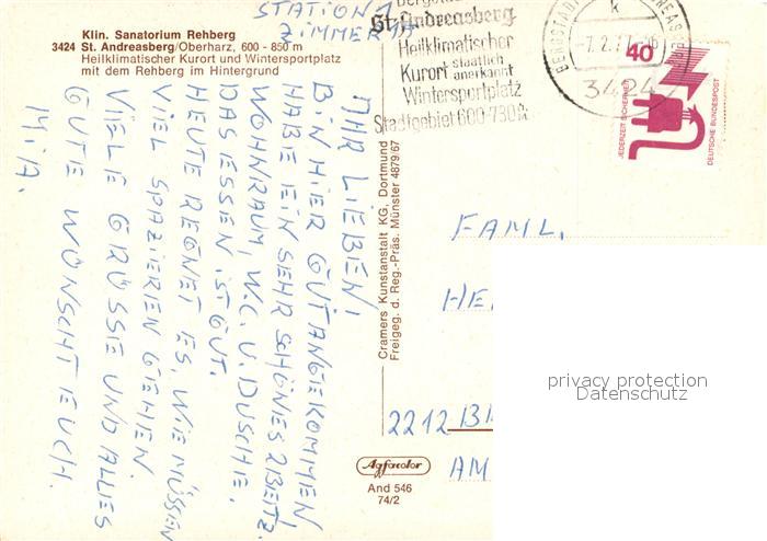 73228456 alte Postkarte St Andreasberg Harz Sanatorium Rehberg Fliegeraufnahme postalisch gelaufen Erhaltung siehe scans [FriedD77] KatCode: 11110003153010