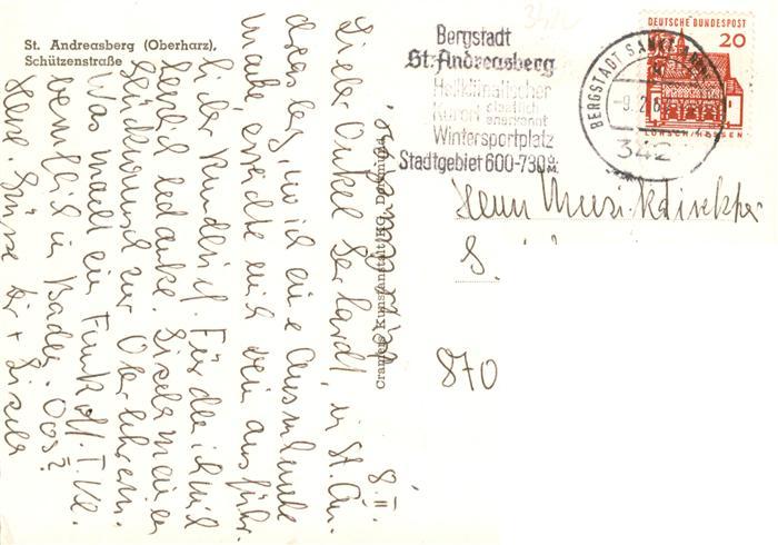 73949378 alte Postkarte St Andreasberg Harz Schuetzenstrasse postalisch gelaufen Erhaltung siehe scans [WerneD78] KatCode: 11110003153010