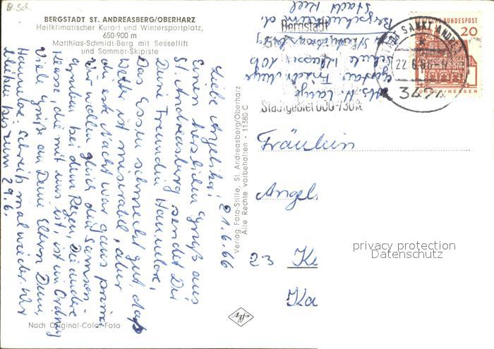 72117776 alte Postkarte St Andreasberg Harz Sessellift postalisch gelaufen Erhaltung siehe scans KatCode: 11110003153010