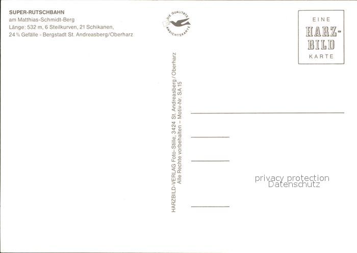 72321546 St Andreasberg Harz Sommerrodelbahn postalisch nicht gelaufen Erhaltung siehe scans KatCode: 11110003153010