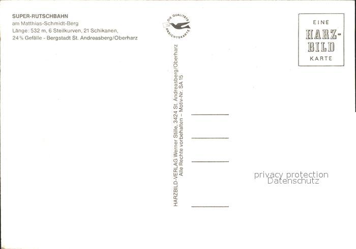 72262017 St Andreasberg Harz Sommerrodelbahn postalisch nicht gelaufen Erhaltung siehe scans KatCode: 11110003153010
