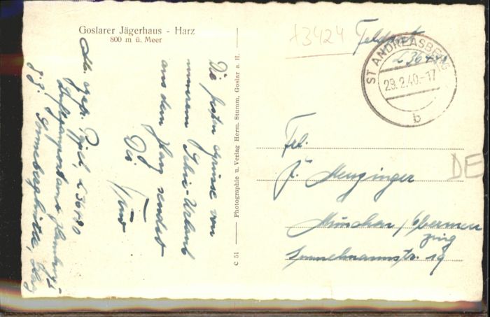 40878258 St Andreasberg Harz St_Andreasberg [Stempelabschlag] Goslarer Jägerhaus KatCode 11110003153010