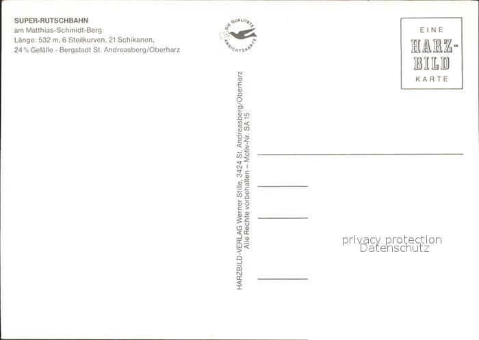 72241986 St Andreasberg Harz Super-Rutschbahn Matthias-Schidt-Berg postalisch nicht gelaufen Erhaltung siehe scans KatCode: 11110003153010