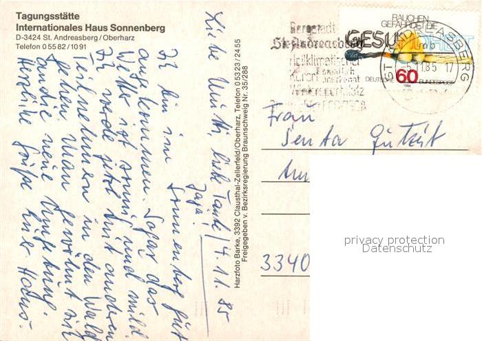 73160660 alte Postkarte St Andreasberg Harz Tagungsstaette Internationales Haus Sonnenberg Fliegeraufnahme postalisch gelaufen Erhaltung siehe scans [FriedD77] KatCode: 11110003153010