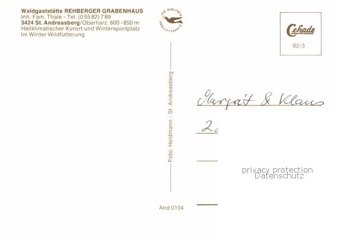 72781823 St Andreasberg Harz Waldgaststaette Rehberger Grabenhaus im Winter postalisch nicht gelaufen Erhaltung siehe scans [FriedD77] KatCode: 11110003153010