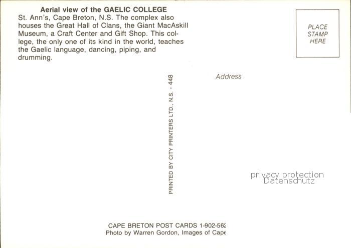 St Anns Nova Scotia Gaelic College postalisch nicht gelaufen Erhaltung siehe scans
