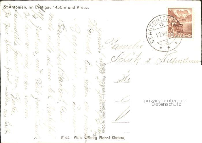 11645386 alte Postkarte St Antoenien GR Kreuz Kirche postalisch gelaufen Erhaltung siehe scans KatCode: 11470100350410