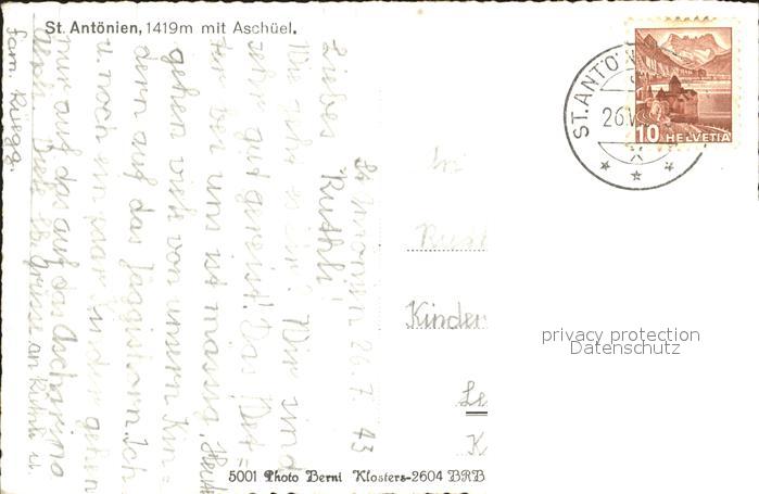 12029931 alte Postkarte St Antoenien GR mit Aschueel Panorama postalisch gelaufen Erhaltung siehe scans KatCode: 11470100350410