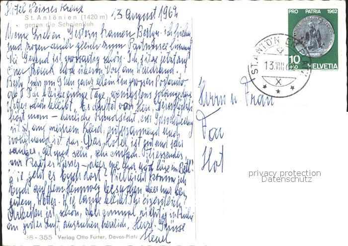 11645392 alte Postkarte St Antoenien GR Scheienfluh postalisch gelaufen KatCode: 11470100350410