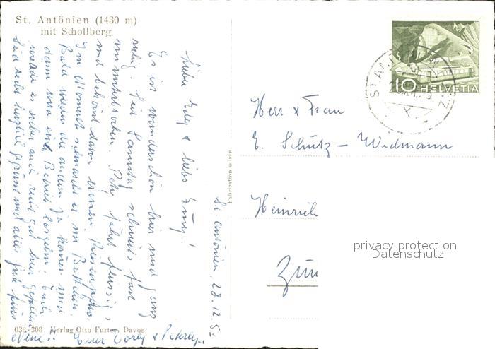 11645387 alte Postkarte St Antoenien GR Schollberg postalisch gelaufen Erhaltung siehe scans KatCode: 11470100350410