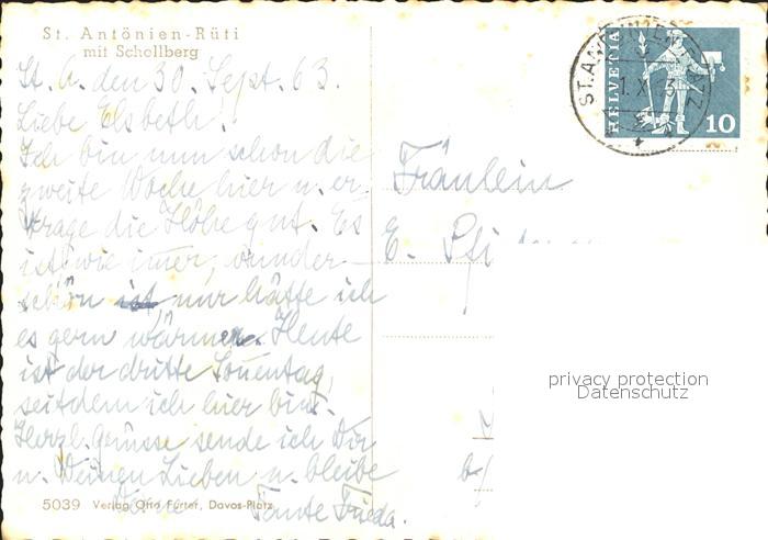 11645492 alte Postkarte St Antoenien GR Schollberg postalisch gelaufen Erhaltung siehe scans KatCode: 11470100350410