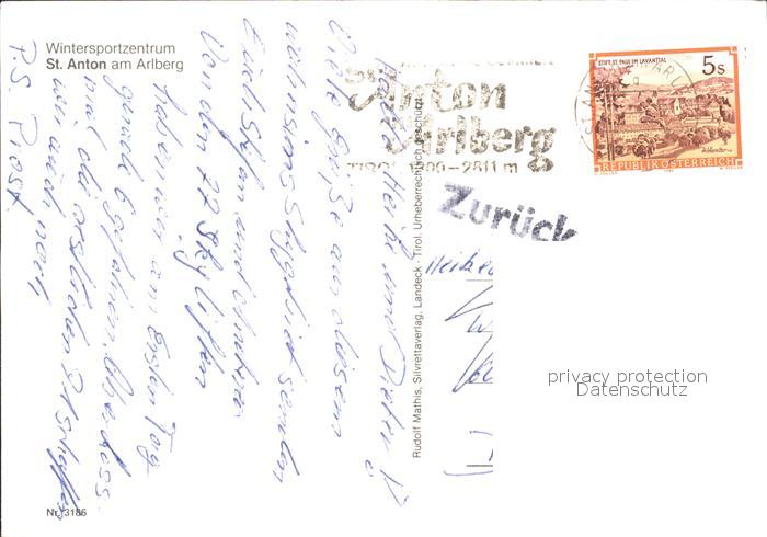 71860153 alte Postkarte St Anton Arlberg postalisch gelaufen Erhaltung siehe scans KatCode: 11390334070621