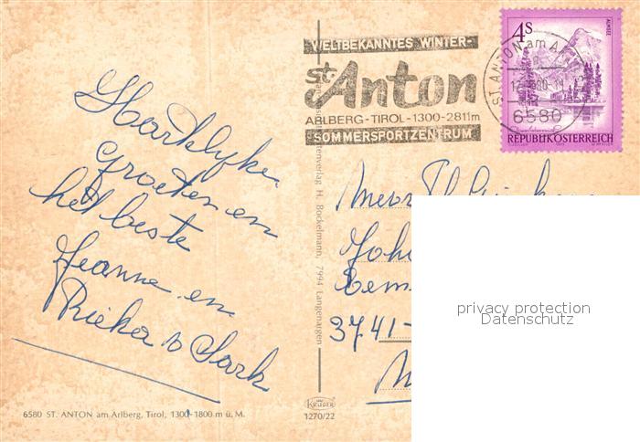 72985202 alte Postkarte St Anton Arlberg postalisch gelaufen Erhaltung siehe scans [LiesaD40] KatCode: 11390334070621