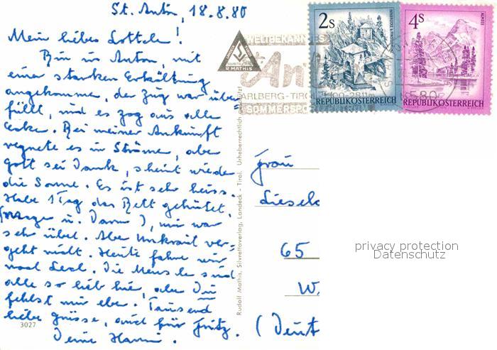 72835108 alte Postkarte St Anton Arlberg Berghotel Galzig Valluga Ulmerhuette Bergbahn Alpenpanorama Hochgebirge postalisch gelaufen Erhaltung siehe scans [FriedD77] KatCode: 11390334070621