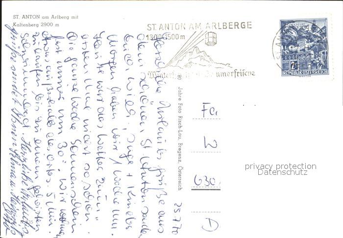 72548498 alte Postkarte St Anton Arlberg Fliegeraufnahme postalisch gelaufen Erhaltung siehe scans [LiesaD40 kv019box] KatCode: 11390334070621