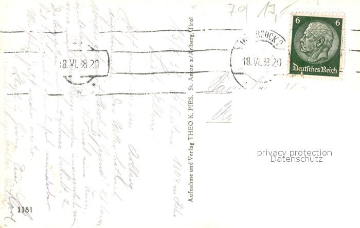 43046499 alte Postkarte St Anton Arlberg Fliegeraufnahme postalisch gelaufen Erhaltung siehe scans [LiesaD40] KatCode: 11390334070621