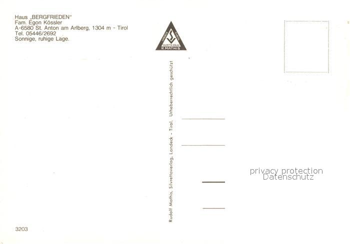 73492560 St Anton Arlberg Haus Bergfrieden postalisch nicht gelaufen Erhaltung siehe scans [WerneD78] KatCode: 11390334070621